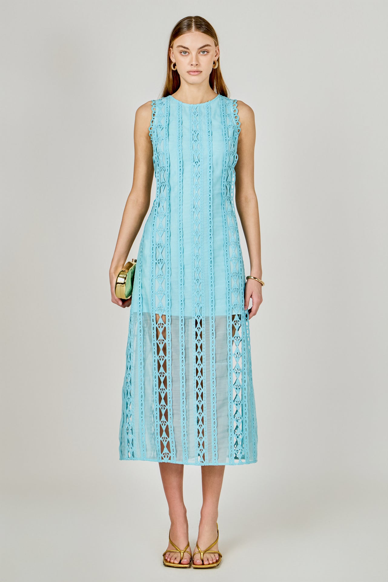 Lace Trim Sleevesless Midi Dress