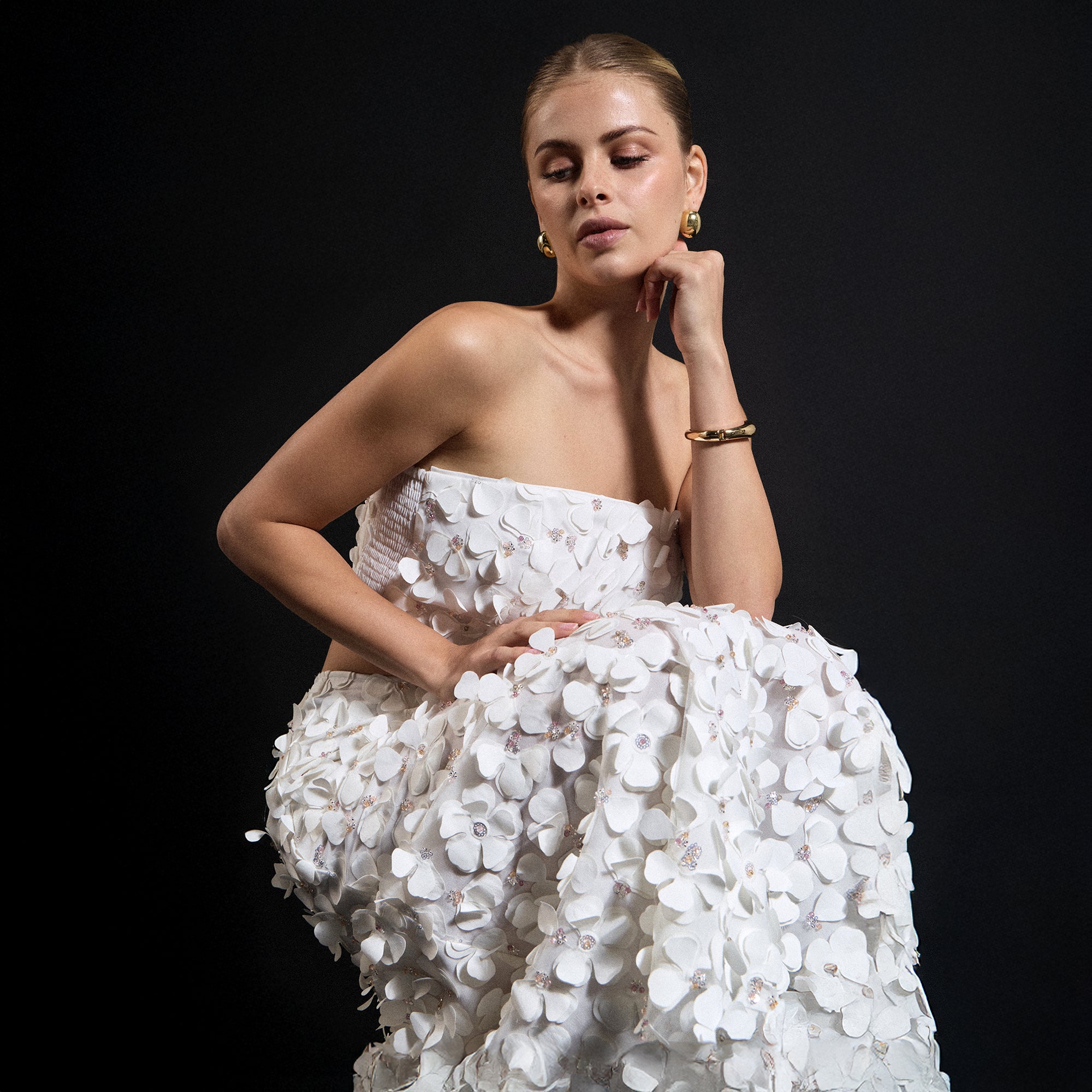 Tweed Mini Dress With Floral Trim