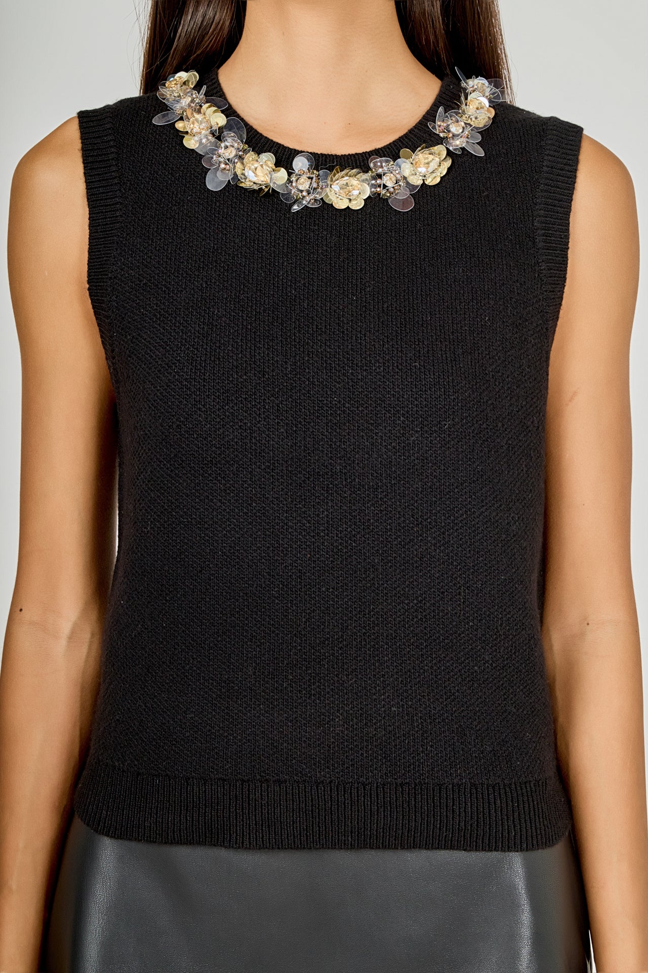 Knit Jewel Trim Sleeveless Top