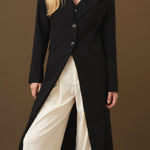 Are you looking for a chic, versatile jacket to take you through the seasons? Then Endless Rose has the perfect jacket for you! Our Front Slit Long Jacket features a unique slit in the front that remains open when buttoned; truly a one-of-a-kind piece. This wardrobe must-have can be styled for work, a fancy dinner, and any other plans you may have! The lapel and padded shoulders give this jacket a sophisticated and stylish feel.