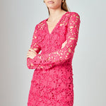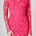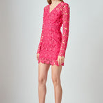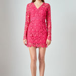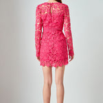 Captivate them with your captivating charms in this all-over lace mini dress. With its stunning neckline and see-through lace sleeves, this little number is perfect for making an unforgettable impression. Step out in style and feel like a queen in this figure-flattering mini-dress.