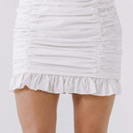 Get ready to turn heads in our All Over Ruched Mini Skirt. With a flattering ruffle hem and mini length, this skirt is designed to showcase your curves. The all over ruching adds a touch of texture and dimension, while the lining ensures comfort. Perfect for a night out or a dressed up daytime look, our skirt is versatile and stylish. Choose from our selection of colors to match your personal style. This skirt is a must-have for any fashion forward wardrobe. Shop now and elevate your outfits with our All Over Ruched Mini Skirt.