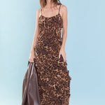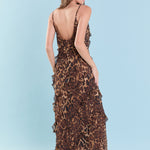 Unleash your wild side with our stunning animal print ruffled slip maxi dress. This dress exudes elegance and sass with its fierce animal print design, while the ruffled detailing adds a touch of femininity. The maxi length creates a flowy and flattering silhouette, perfect for any occasion. With a sleeveless design, this dress will keep you cool and stylish all day long. Stand out from the crowd and make a bold statement in this must-have dress. Shop now and embrace your inner fashionista with our animal print ruffled slip maxi dress.