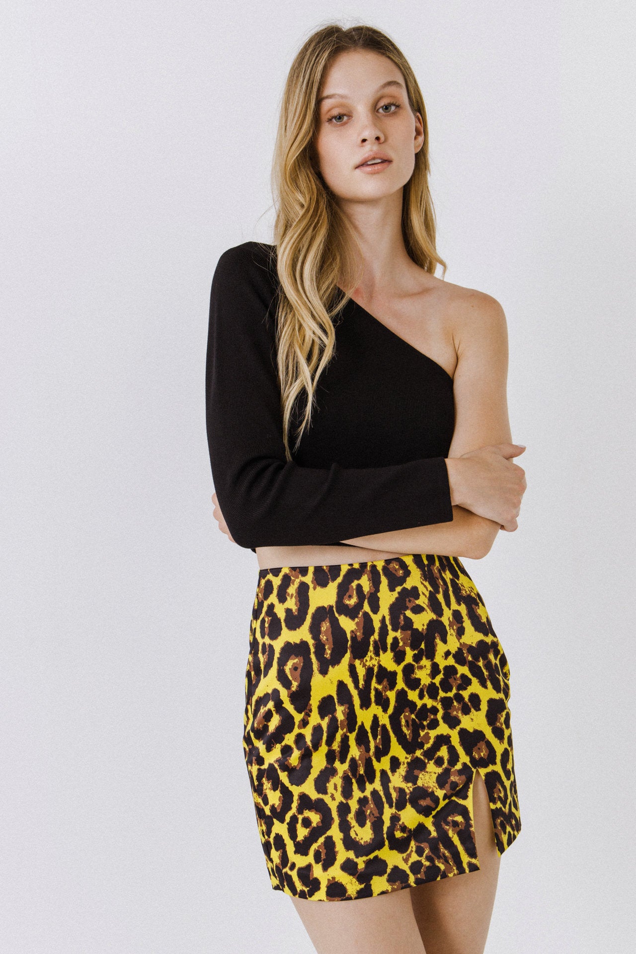 Introduce some fierce style into your wardrobe with our Animal Print Slit Detail Mini Skirt. This mini skirt showcases a bold animal print that will give you a wild and trendy edge. The rear slit detail adds a touch of sophistication and is perfect for showing off your killer heels. The invisible zipper provides a seamless fit and effortless wear. Make a statement and stand out in this must-have skirt that combines fashion and function. Pair it with a solid top and accessories for a complete look. Add this to your collection and unleash your inner fashionista!