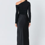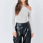 This Asymmetric Shoulder Top is the perfect blend of fashion and comfort. Featuring a fitted design with long sleeves it is crafted from a soft and lightweight fabric that ensures maximum comfort. With an asymmetric shoulder this top adds a statement element to any look. For best results hand wash cold and lay flat to dry. Get ready to make a style statement with this must-have Asymmetric Shoulder Top.