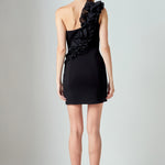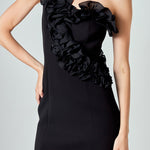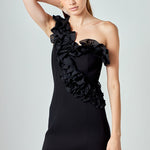 Make them turn heads in our stylish Asymmetrical Ruffle Stretch Mini Dress. This one-shoulder dress features contrast ruffles a fitted bodice and a side invisible zipper. Show off your sense of fashion with this contemporary dress that won't go unnoticed. Our dress is perfect for parties or a night out with friends. Stand out from the crowd with this unique take on dress design and let your wardrobe do the talking.