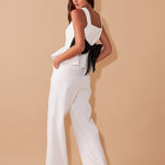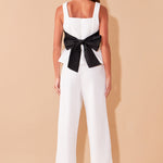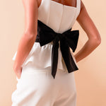 Stay cool and stylish with this Back Bow Contrast Top! Crafted from a knit bodice and a poplin peplum it offers the perfect combination of comfort and elegance. The regular fit and sleeveless design makes it perfect for the warm summer season.