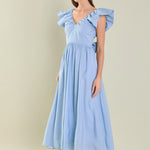 Elevate your style with our Back Bow Tied Maxi Dress. This stunning dress features a flattering maxi length that is both elegant and comfortable. The drop V neck adds a touch of femininity, while the back bow tied detail adds a unique and stylish touch. With convenient side pockets, this dress seamlessly combines fashion and functionality. Perfect for any occasion, this dress is a must-have in your wardrobe. Don't miss out on this chic dress, and add it to your cart today!