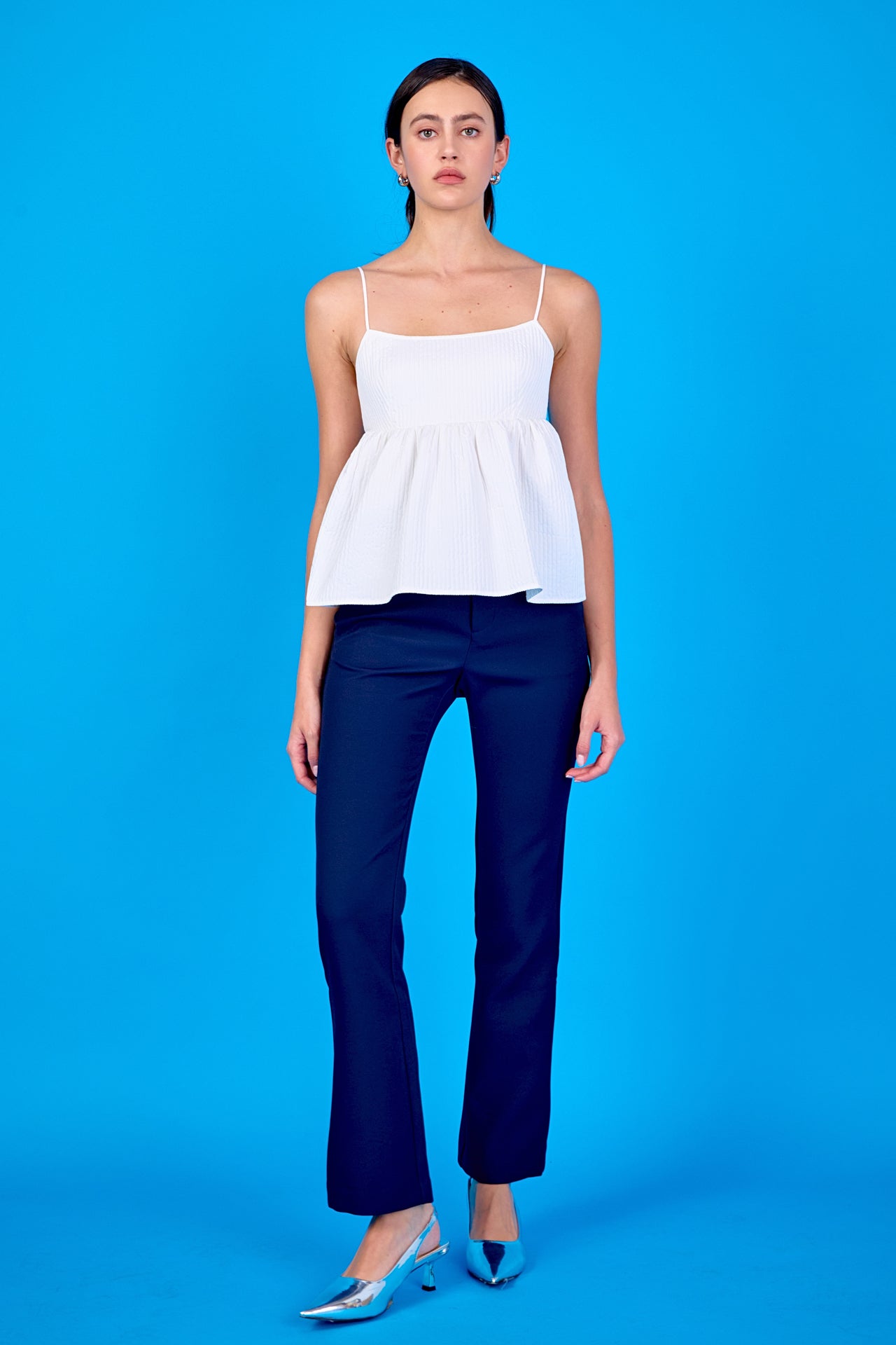 Introducing our Evelyn Back Tie Textured Babydoll Top - the perfect mix of style and comfort. Crafted with a textured fabric, this top offers a unique touch to your wardrobe. The skinny straps add a flirty vibe, while the back ties allow for a customized fit. The babydoll silhouette flatters every body type, making it a must-have for any fashionista. Elevate your casual look or dress it up for a night out. Shop now and add texture to your look with our Evelyn Back Tie Textured Babydoll Top.