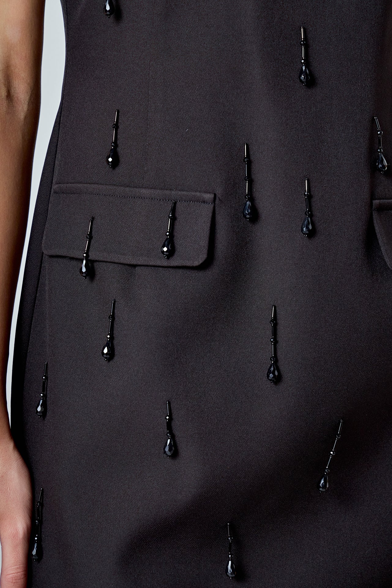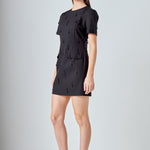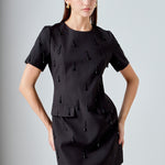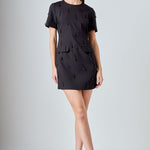 Experience elegance and sophistication in this beautiful beaded mini dress. Crafted from soft fabric and designed with a fitted silhouette this dress boasts short sleeves beaded trim and a mini length. Perfect for a night out or special occasion you can look stylish and timeless while feeling comfortable and confident. With its stunning and unique design this dress is sure to make heads turn!