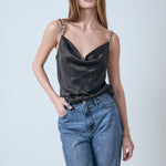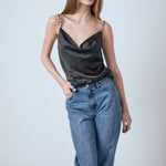 You'll love this elegant and stylish Beaded Cami. Add some glamor to your evening look with this statement top. With beautifully beaded straps and a flattering cowl neck, it's perfect for dressing up any look. This versatile piece can be teamed with everything from to a party skirt
