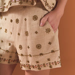 Make a statement in our Beaded Shorts. Featuring intricate beadwork, these shorts bring a touch of luxury and sophistication to any outfit. Crafted from high-quality materials for comfort and durability, they're perfect for pairing with its matching top and elevating your everyday look. Stand out from the crowd with this unique, eye-catching design, an essential piece for any fashion-forward wardrobe.