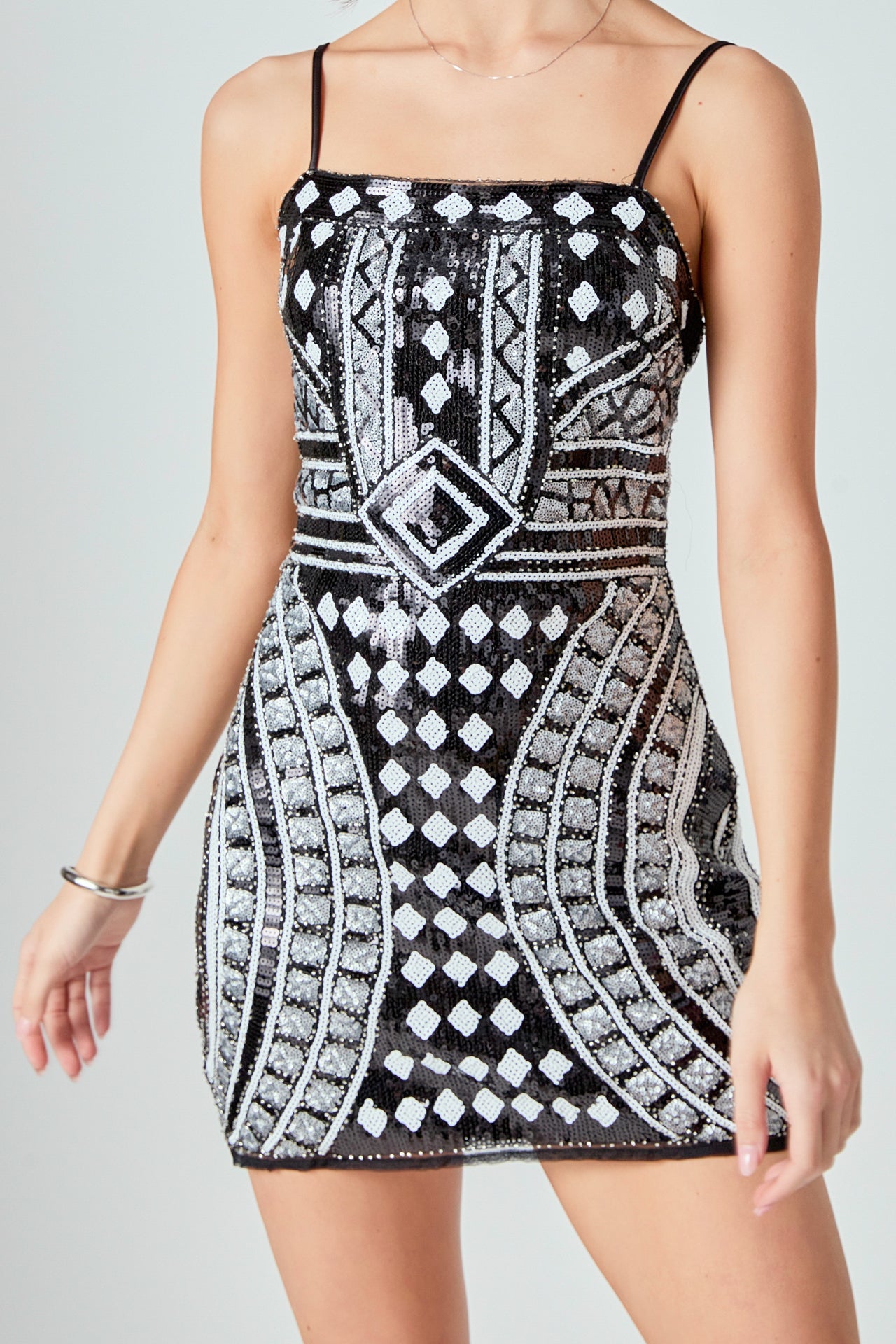 Introducing our Beading Sequins Mini Dress, the perfect addition to your wardrobe! This fitted mini dress will accentuate your curves and create a flattering silhouette. The side invisible zipper ensures a seamless fit, while the adjustable spaghetti straps allow for a customizable look. The gorgeous embellishment adds a touch of glamour that will make you stand out in any crowd. Ideal for formal events, parties, and date nights, this dress is sure to turn heads. With its stunning design and superior quality, our Beading Sequins Mini Dress is a must-have for every fashion-forward woman.