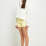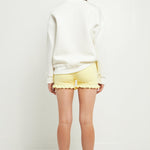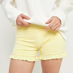 These Biker Shorts with Ruffles are perfect for lounging around the house on a lazy weekend. The light yellow hue is cheerful and will brighten up any day and the matching set is available if you need a complete look. Made from comfortable bike shorts material these will be your new favorite loungewear pieces.