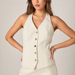 Looking for the perfect blend of style and functionality? Our Blend Halter Top has got you covered. This versatile top features a trendy halter neckline, making it ideal for both casual outings and dressed-up occasions. The front buttons add a touch of sophistication, while the V neckline and welt pocket add a unique charm. Made with high-quality fabric, this top is comfortable and durable. Whether you want to stay on-trend or make a statement, our Blend Halter Top is a must-have. Shop now and elevate your wardrobe with this must-have piece.