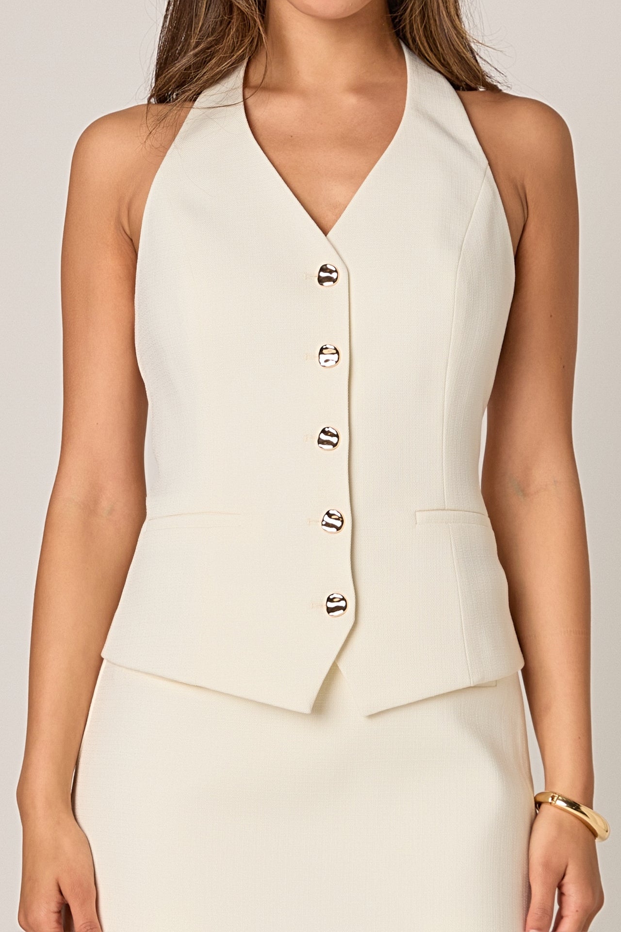 Looking for the perfect blend of style and functionality? Our Blend Halter Top has got you covered. This versatile top features a trendy halter neckline, making it ideal for both casual outings and dressed-up occasions. The front buttons add a touch of sophistication, while the V neckline and welt pocket add a unique charm. Made with high-quality fabric, this top is comfortable and durable. Whether you want to stay on-trend or make a statement, our Blend Halter Top is a must-have. Shop now and elevate your wardrobe with this must-have piece.