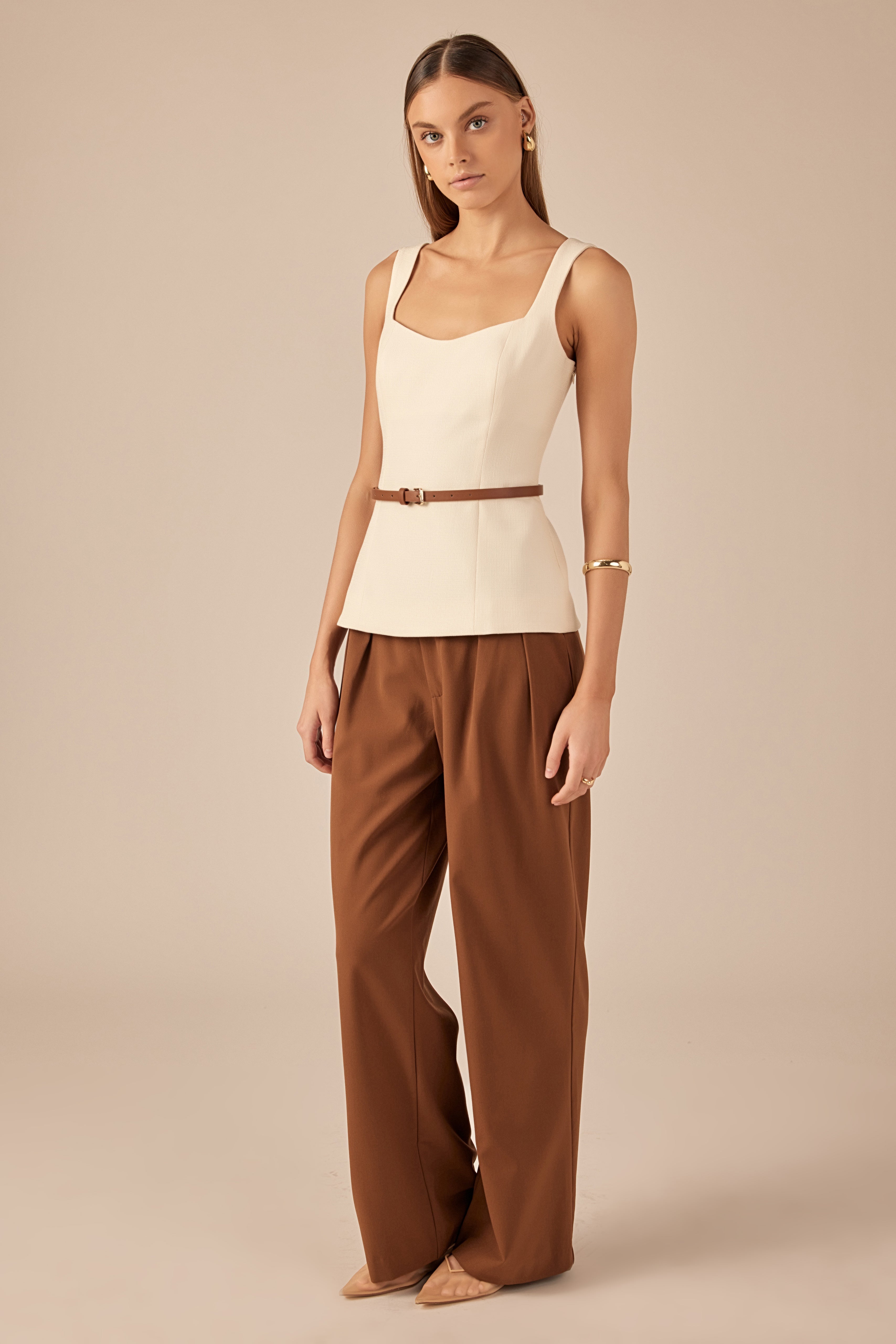 Update your wardrobe with our Blend Sweetheart Long Top! This modern take on the classic cami top features a stunning tweed design, adding texture and elegance to any outfit. With a sleeveless design, it's perfect for warmer days or layering under jackets. The fit and flare silhouette accentuates your shape and adds a touch of femininity. With its regular length, it's ideal for pairing with high-waisted bottoms. Elevate your style with our versatile and stylish Blend Sweetheart Long Top. Perfect for any occasion, from casual to dressy. Shop now and stand out in this must-have piece!