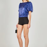 This Blouson Sheen Top is sure to turn heads with its timeless elegant design. Crafted from a soft and light sheen fabric it features blouson short sleeves and an elastic waist for a flattering and comfortable fit. The side zipper adds an extra touch of style to this timeless piece. Elegant timeless and versatile this blouson sheen top is sure to become a wardrobe favorite.