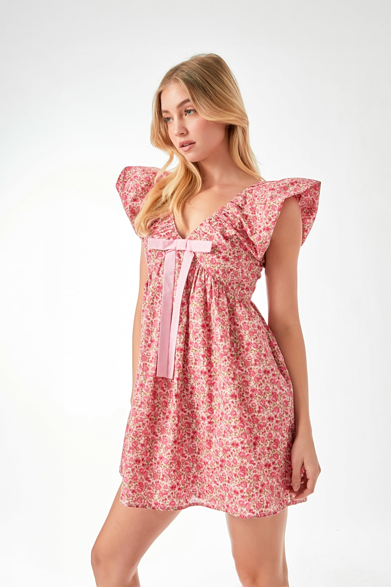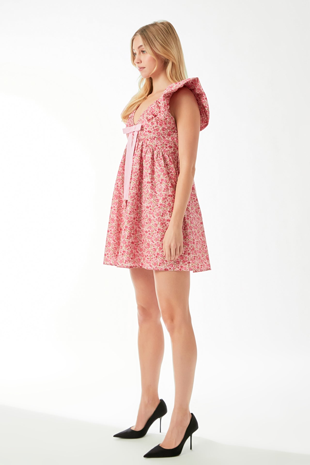 This stunning Blouson Shoulder Mini Dress features a V-neck floral pattern and sits just above the knee for a classic yet modern look. The unique blouson shoulder adds a special touch to make you stand out. With its timeless design and high-quality construction this dress is sure to become a wardrobe favorite. Perfect for any occasion from casual daytime outings to sophisticated evening events. Get ready to turn heads in this mini dress!