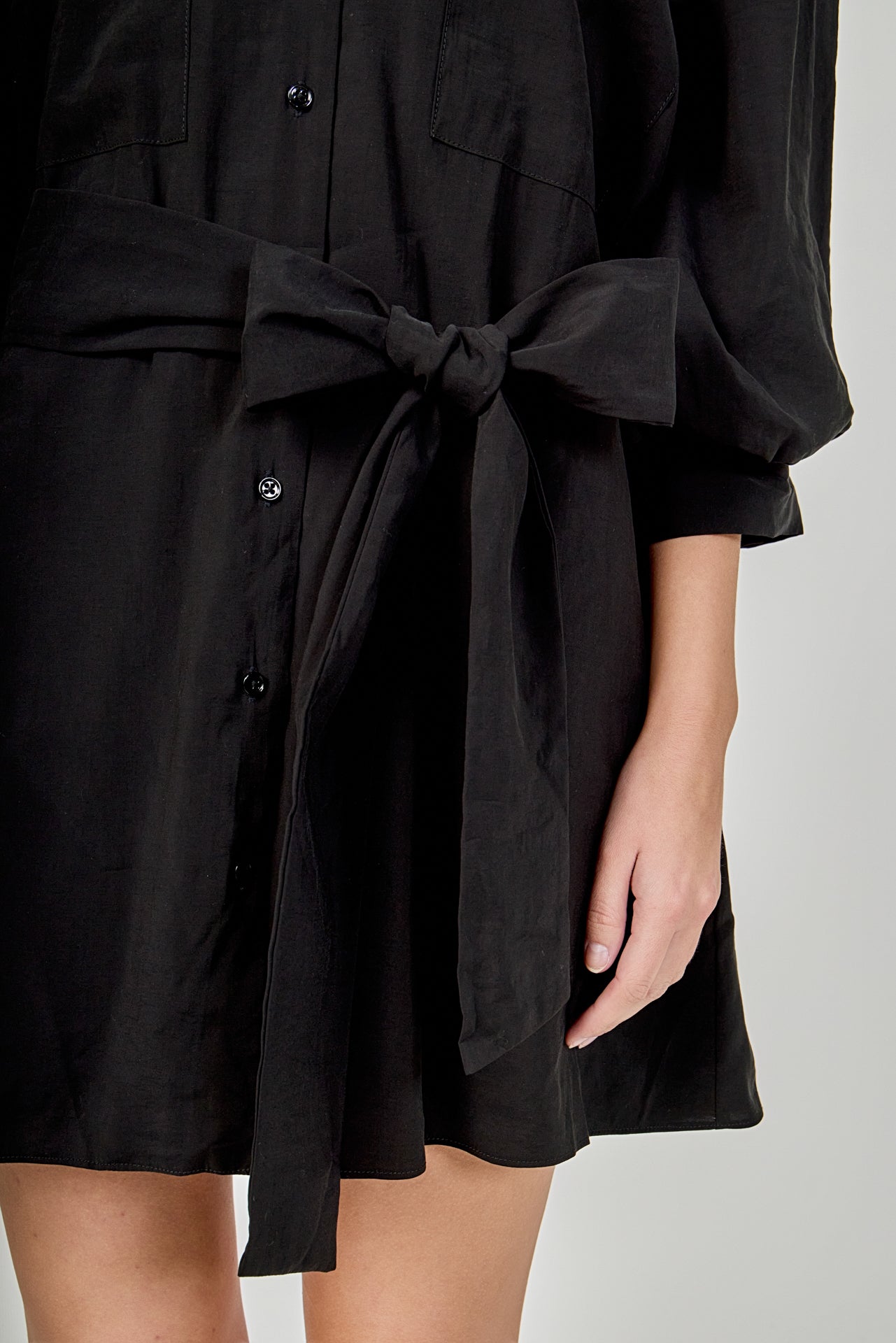 - Removable self-tie belt sash