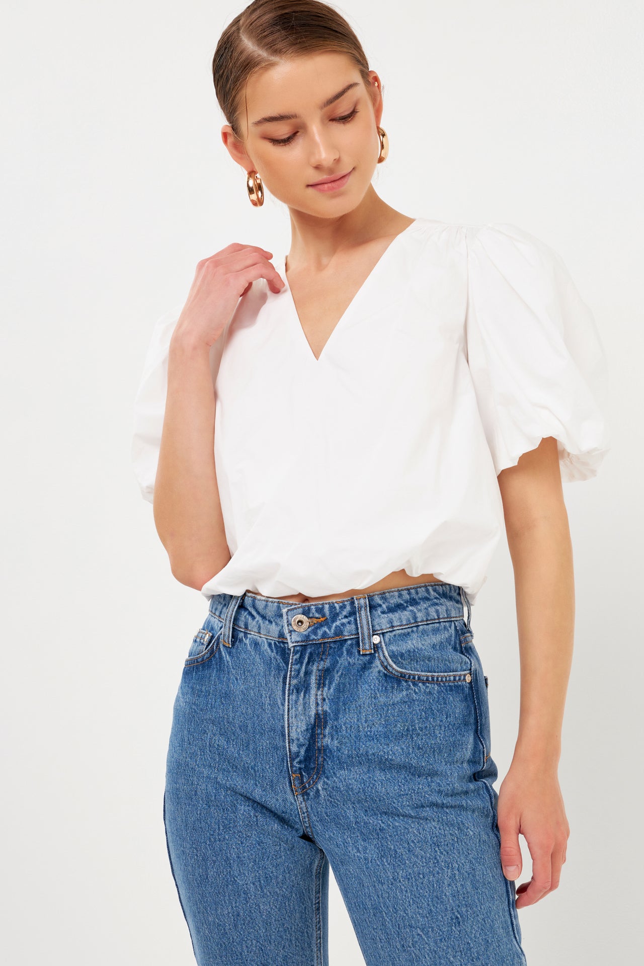 Elevate your style with our Blouson Top with Back Spaghetti Closure. Made from breathable poplin fabric, this top offers both comfort and fashion. The V neckline and puff blouson sleeves add a touch of elegance to the design. But what truly sets this top apart is the back spaghetti closure, giving it a chic and modern look. Perfect for any occasion, this top is versatile and on-trend. Don't miss out on adding this staple piece to your wardrobe. Shop now and stand out in style.