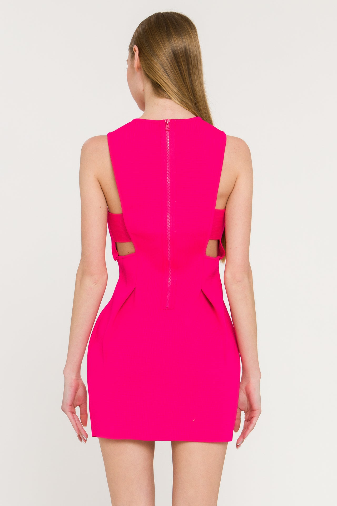 Add a touch of sophistication to your day-to-night look with this bodycon knit dress. With sleek pleated detail and alluring cut-out detail at the back this dress will make you feel confident and stylish from morning to night. Perfect for dressing up or dressing down this versatile piece is a must-have in any fashion lover's wardrobe.