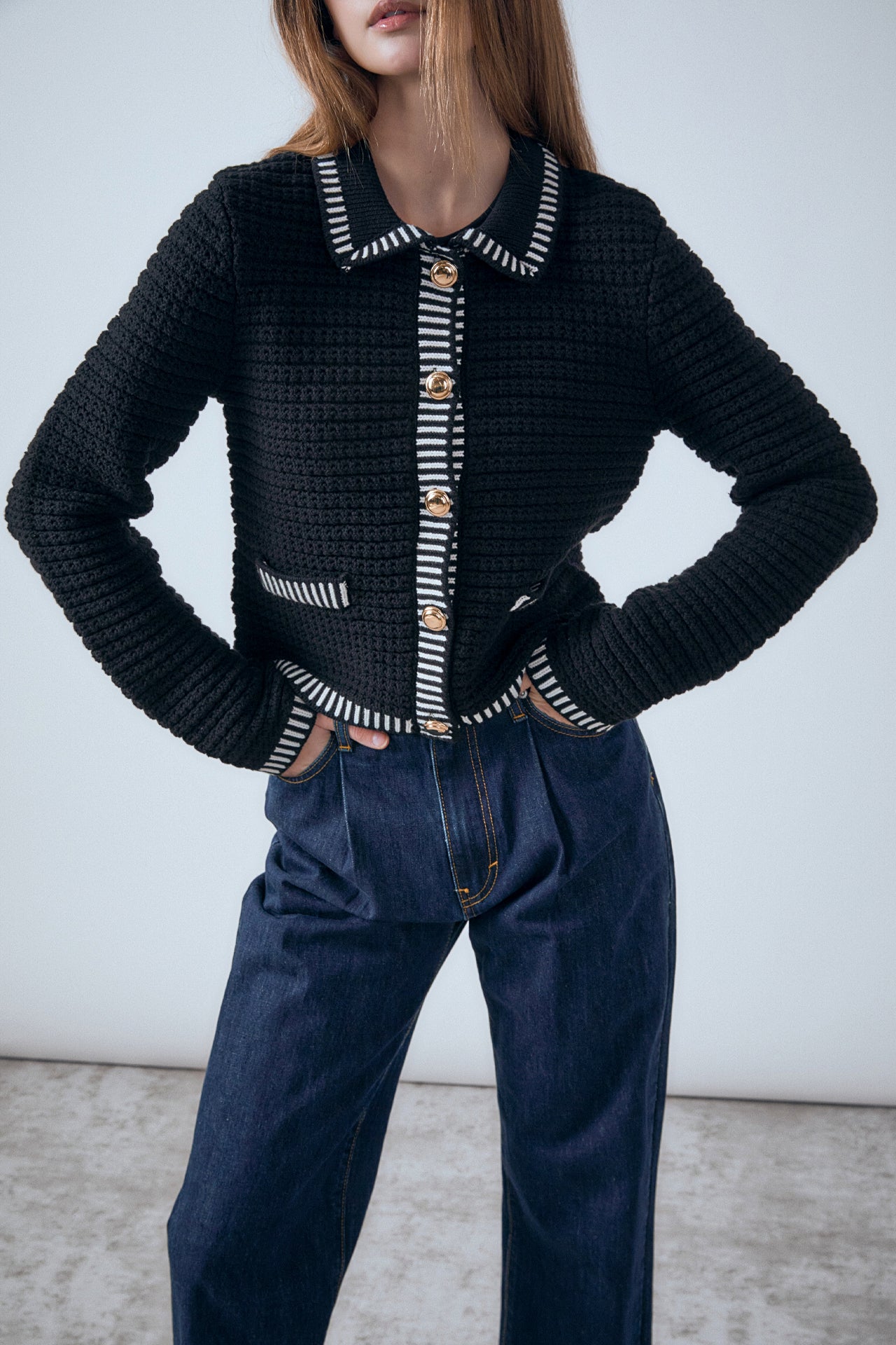 Get ready to elevate your sweater game with our must-have Celine Border Buttoned Jacket. Crafted from a luxurious knit, this jacket features a beautiful border detail that adds a touch of sophistication. The front buttons make for easy wear, while the collar adds a polished finish. Perfect for both work and weekend, this versatile piece will keep you cozy and stylish all season long. Upgrade your winter wardrobe with our Celine Border Buttoned Jacket and stand out in style. Shop now and stay on-trend with this season's hottest knitwear.