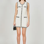 Add a touch of cozy style to your wardrobe with our Border Sweater Mini Dress. Made with a soft knit fabric, this sleeveless dress is perfect for those chilly days. The mini length adds a flirty touch, while the border detail highlights your curves in all the right places. Plus, it's versatile enough to be dressed up for a night out or dressed down for a casual day look. Update your dress game with this must-have piece. Shop now and add this chic dress to your collection.