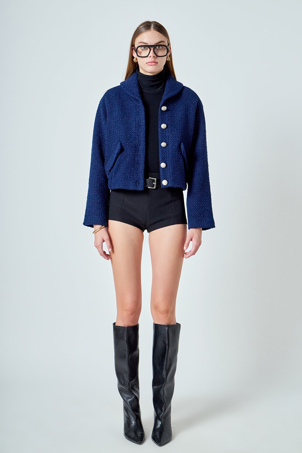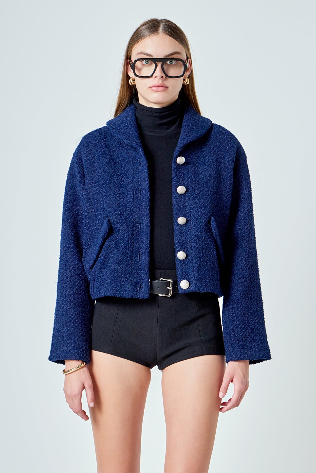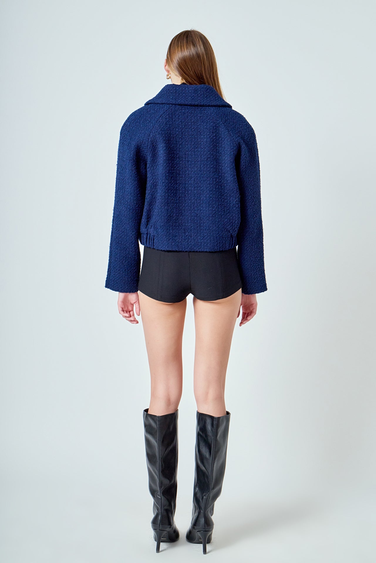 Boucle Tweed Buttoned Bomber