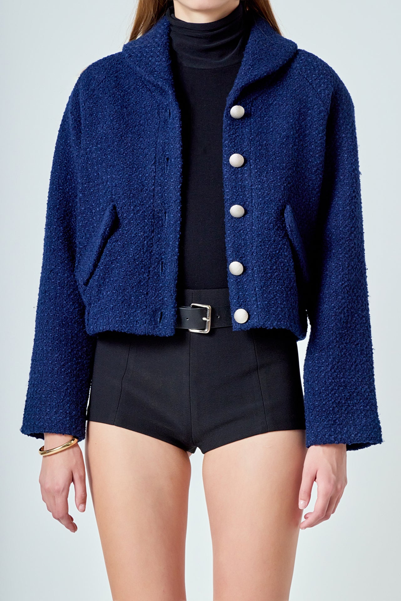 Introducing the Boucle Tweed Buttoned Bomber - the ultimate outerwear piece for a fashionable modern look. Offering a unique boucle pattern with a slightly cropped length a stylish Peter Pan collar and five buttons - it's the ideal combination of fashion and function. The bomber is made with quality materials for a longer lasting and better feeling wear. Get this must-have piece today and add the perfect touch of style to your wardrobe.
