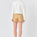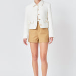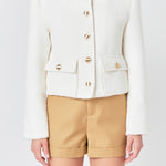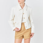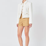 Stay chic and stylish in our Boucle Tweed Jacket! Crafted from the finest tweed, this jacket exudes timeless sophistication. The elegant buttons and classic collar add a touch of refinement to the design. And with convenient front pockets, you can carry your essentials with ease. Perfect for any occasion, this jacket is a must-have for every fashion-forward individual. Embrace the luxurious texture and versatility of our Boucle Tweed Jacket. Shop now and elevate your wardrobe with this coveted piece!