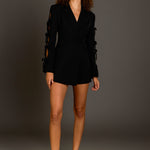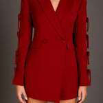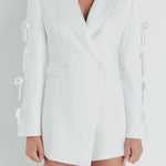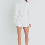 Introducing our Bow Detailed Romper - the perfect combination of style and comfort. With a classic collar and long sleeves, this romper is both fashionable and versatile. The sleeve cut out details feature delicate embroidery bows, adding a touch of elegance to this piece. Plus, the front flap pockets provide convenient and practical storage. Made from high-quality materials, this romper is perfect for any occasion. Update your wardrobe with our Bow Detailed Romper and stand out from the crowd. Order now and embrace effortless style.