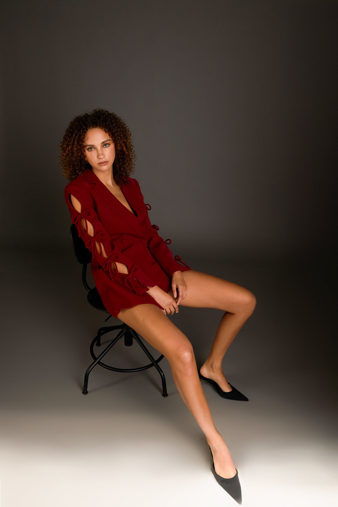 BLACK / BURGUNDY: Height 5'10" / Bust 34"/ Waist 24.5" / Hip 34.5"