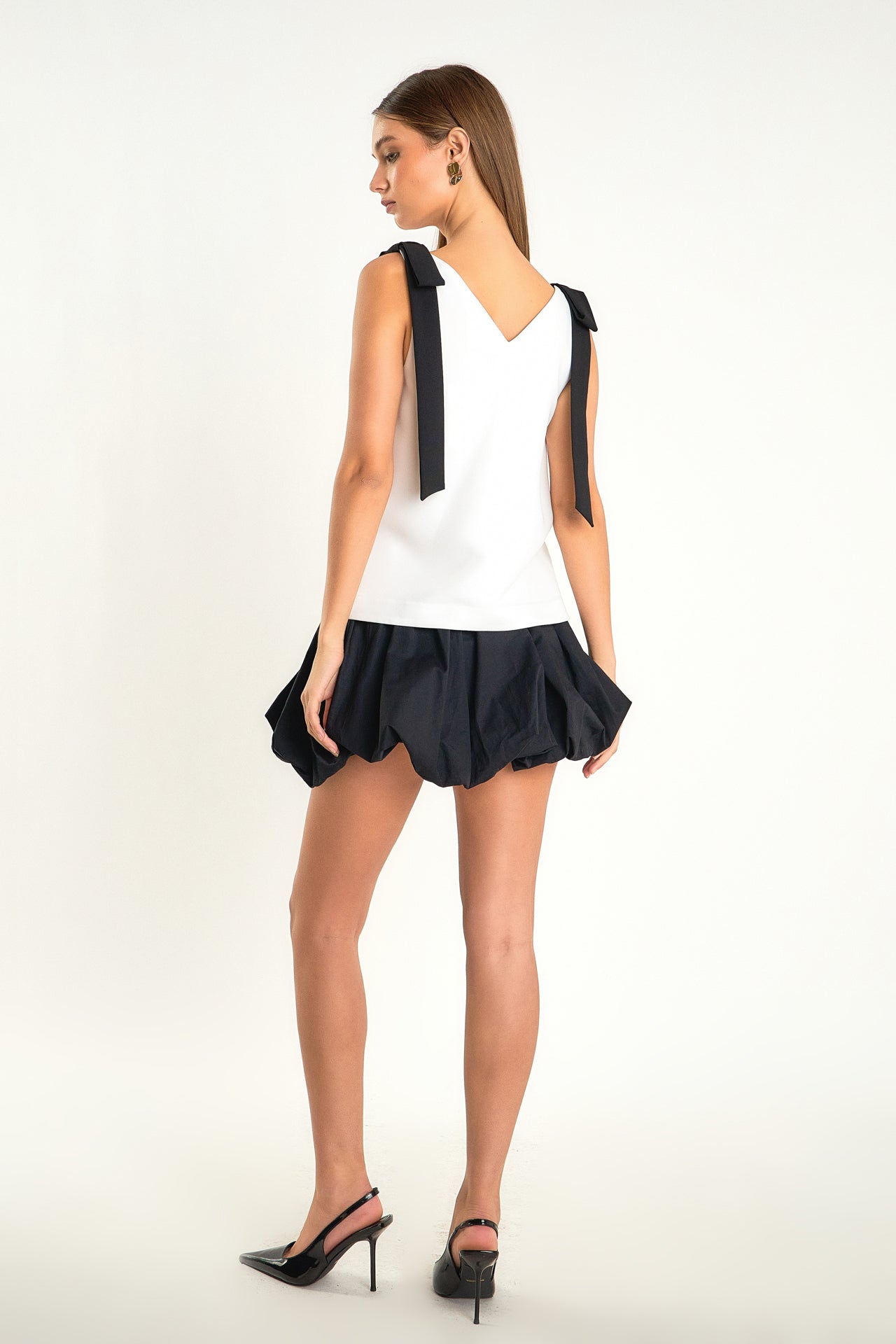 Introducing our charming Bow Detailed Top as the must-have addition to your wardrobe! This versatile top features a flattering V neckline and sleeveless design perfect for layering or wearing on its own. The self-tie bow details at the shoulders add a touch of elegance and femininity making this top a true standout. Crafted with a comfortable pull over design it's easy to wear and style for any occasion. Elevate your look with this trendy top that is bound to turn heads. Shop now and stay ahead of the fashion game!