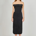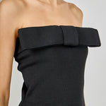 Stand out in our Bow Detailed Tube Midi Knit Dress. This strapless dress features a flirty bow detail and a flattering knit fabric for comfort and style. The midi length adds sophistication, while the center-back slit provides a subtle touch of allure. Perfect for any occasion, this dress is a must-have statement piece.