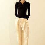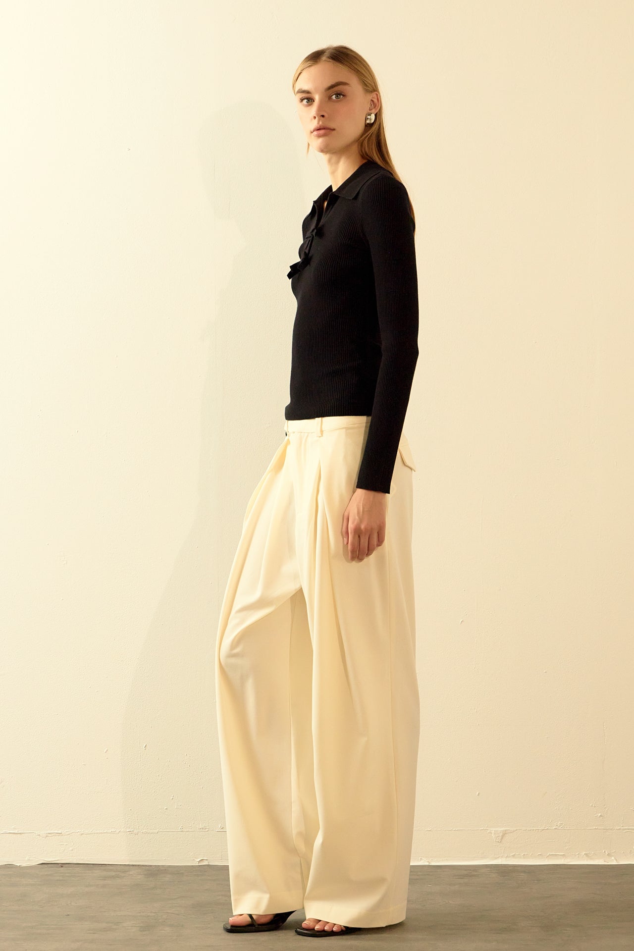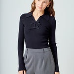 This charming Bow Knit Top adds a touch of femininity to your wardrobe. Crafted with a soft and comfortable knit fabric, it features a front bow detail that accentuates your neckline. The classic collar and long sleeves add a timeless appeal, making it perfect for any occasion. This versatile top can be dressed up or down, making it a must-have for any fashion-forward woman. Elevate your style game with this Bow Knit Top that offers sophistication and effortless elegance. Shop now and enhance your wardrobe with this trendy and stylish piece!