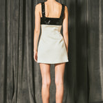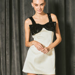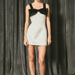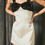 Introducing our stunning Bow Mini Dress, the ultimate choice for all your special occasions. With a square neckline and contrasting shoulder straps, this dress exudes elegance and sophistication. The standout feature is the delicate sequin bow at the chest, making it perfect for those who love a touch of sparkle. The back hook and eye closure at the top ensures a comfortable and secure fit. Made with high-quality materials, this dress is both stylish and comfortable. Elevate your wardrobe with this must-have piece and be the center of attention at any event. Perfect for weddings, parties, or a night out. Add it to your cart now and turn