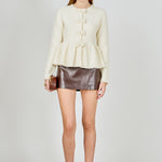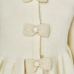 The Bow Trim Flared Cardigan combines cozy comfort with feminine detail. Made from soft knit, it features a flared silhouette that flatters the waist and a delicate bow trim for a subtle, stylish touch. The classic round neckline and long sleeves make it easy to layer over casual or dressier outfits, making it a versatile wardrobe staple for the season.