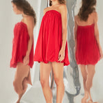 Make a bold style statement with our Bubble Mini Dress. This dress features a flirty and fun mini length perfect for showing off your legs. The strapless design adds a touch of elegance while the bubbled texture adds a unique and eye-catching detail. Complete with a convenient side zipper for easy wear this dress is versatile and perfect for any occasion. So go ahead stand out from the crowd with our Bubble Mini Dress.