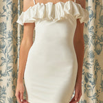 Get ready to turn heads with our Bubble Off Shoulder Mini Dress. This fitted dress features a playful mini length that accentuates your curves. The removable shoulder strap allows for versatile styling options while the off the shoulder design adds a touch of femininity. Perfect for a night out or a special occasion this dress will make you feel confident and chic. Don't miss out on this must-have wardrobe staple. So why wait? Add this dress to your cart now and be the center of attention.