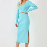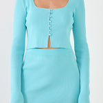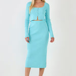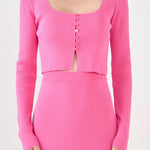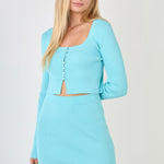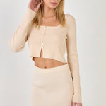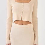 Looking for a stylish and comfortable way to keep warm? Check out this Button Down Knit Cardigan. Made from a soft and cozy knit, this cardigan is fitted and cropped for a flattering and stylish look. The square neckline and long sleeves are both trendy and practical, and the buttons add a touch of class. Whether you're headed to the office or out for a night on the town, this cardigan is the perfect way to stay warm and look great.