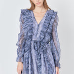 Button Down Long Sleeve Ruffled Mini Dress