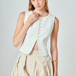 Tara Button Up Cotton Linen Vest