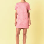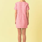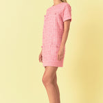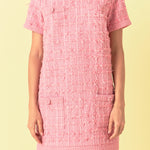 Elevate your style with our Buttoned Tweed Shift Dress. Crafted from high-quality tweed fabric this dress offers luxurious texture and a classic look. The shift dress silhouette is a timeless choice while the mini length adds a modern touch. The round neckline complements the structured design making it a versatile piece for any occasion. Whether you're heading to the office or a special event this dress is sure to turn heads. Don't miss out on this must-have addition to your wardrobe. Shop now and stand out in style!