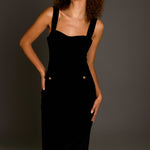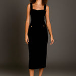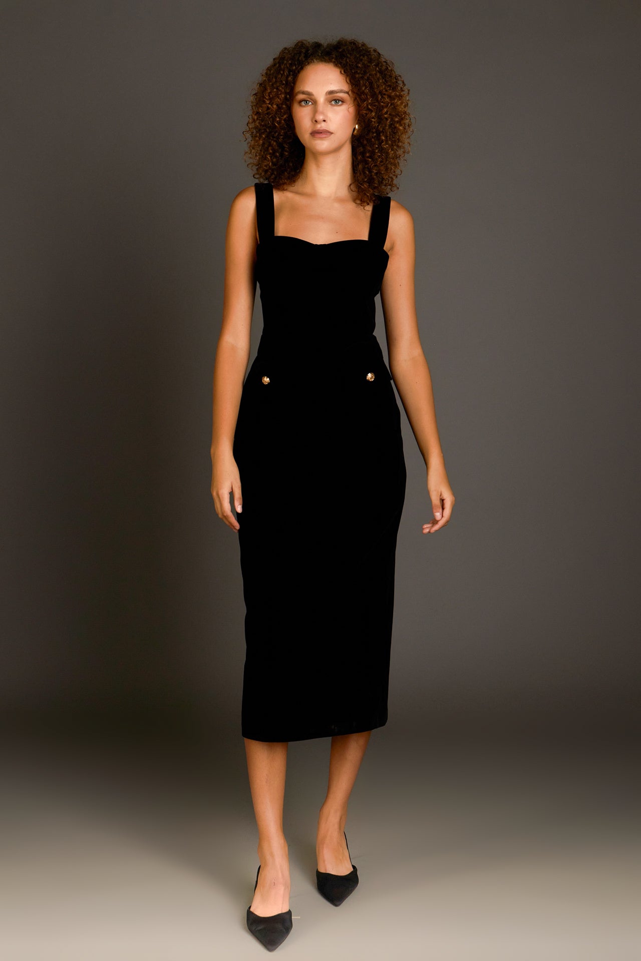 Introducing our Buttoned Velvet Midi Dress - the perfect addition to your dress collection! This stunning piece features a flattering midi length that hits just below the knee and is made of luxurious velvet material for a touch of elegance. The front buttons add a charming detail while the back elastic ensures a comfortable and customized fit. Versatile and unique, this dress is perfect for any occasion. Elevate your style game with our Buttoned Velvet Midi Dress!