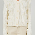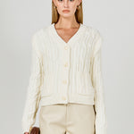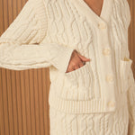 Introducing our Cable Knit Cardigan, the must-have sweater for this season! Featuring a classic cable knit design, long sleeves for extra comfort and warmth, functional pockets for your essentials, and stylish buttons, adding a touch of sophistication to your outfit. Made from soft and cozy materials, this cardigan will keep you cozy and stylish throughout the day. Perfect for layering over any outfit, from casual to dressy. Upgrade your winter wardrobe with our Cable Knit Cardigan and stay on trend with this timeless piece. Shop now for the perfect winter essential!