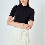 Show off your chic and cozy style with our Cable Knit Mini Skirt! This must-have skirt is designed with a beautiful knit pattern, making it perfect for the cooler seasons. Its mini length adds a flirty touch to any outfit, while the ribbed waistband ensures a flattering fit. Crafted with high-quality materials, this skirt can be easily cared for by hand washing cold and avoiding bleach. Plus, with the option to iron on low, you can keep it looking brand new. Elevate your wardrobe with this trendy and versatile Cable Knit Mini Skirt!