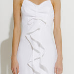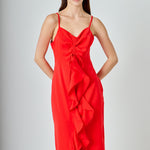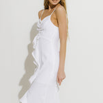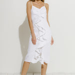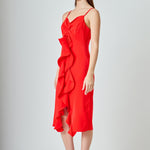 This exquisite Cascading Ruffle Dress is the perfect addition to any wardrobe. It offers an adjustable shoulder strap with beautiful ruched detail at the front bodice with ties. The cascading ruffles at the skirt adds a playful and exquisite touch to this stylish dress. Unleash your inner fashion goddess with this sophisticated yet sassy design. Crafted with comfort and quality in mind, buy this dress today for a look that'll have people talking.