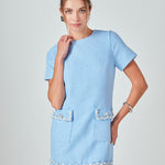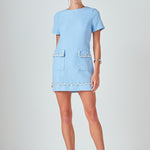Romy Chain Embellished Short Sleeve Tweed Mini Dress