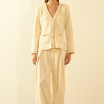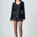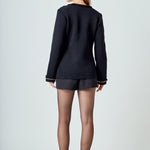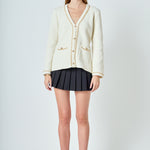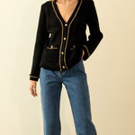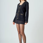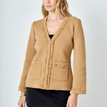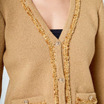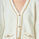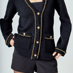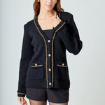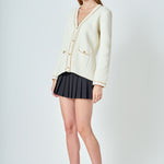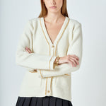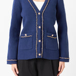 Layer up in style with this Chain Trim Cardigan. This V-neck cardigan features long sleeves and a center front button closure. Buttons at the front pockets give this cardigan a polished touch. The chain trim detail adds a touch of edge to this otherwise classic cardigan. Layer it over a blouse for work or a tee for a casual weekend look.
